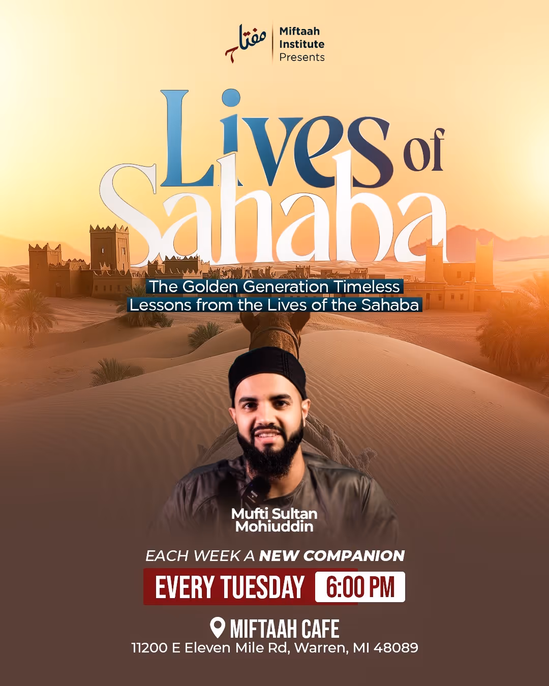 Join Mufti Sultan Mohiuddin as we journey through the lives of the Prophet’s greatest companions—their courage, sacrifice, and unwavering faith. Each session will highlight a different Sahabi!