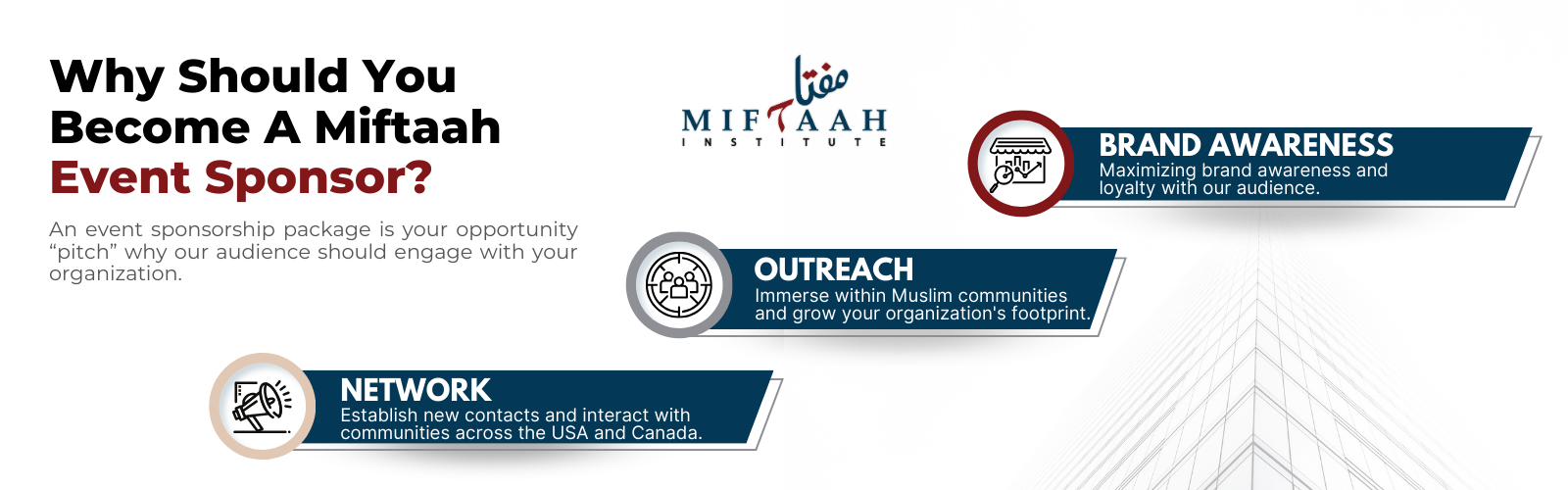 Miftaah strives to make this world a better place for Muslims by providing engaging, accessible, and educational community gatherings. Through Miftaah, the community can engage in conversations and workshops with scholars, fellow students, and attendees. Don’t miss this chance to promote your organization with Miftaah!